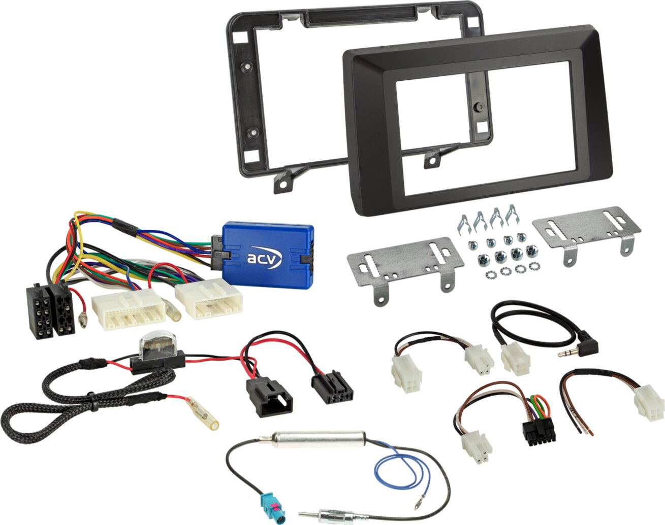 Veel autofabrikanten installeren hun eigen voertuigspecifieke radio’s, die visueel zijn aangepast aan de middenconsole.<br> <br>Daarom heb je een geschikte radiohoes nodig om een standaard DIN- of dubbel DIN-radio te vervangen.<br> <br>Daarnaast zijn er vaak ook voertuigspecifieke radio-aansluitkabels, antenne-adapters, stuurwielafstandsbedieningsadapters, camera-adapters en actieve systeemadapters nodig.<br> <br>Opmerking:<br> <br>analoog<br> <br>Aansluiting: 20pin / 32pin Nissan stekker<br>Aansluiting: Sigarettenaansteker Y-kabel<br>Aansluiting: 42ctmultilead3<br> <br>Voertuigen met radiovoorbereiding<br>Voertuigen met 20pin / 32pin Nissan stekker<br> <br>Voertuigen zonder 12 pin/24 pin/6 pin Dacia stekker<br>Voertuigen zonder +12V ontstekingsstroom klem 15 > 20-polige stekker:<br> <br>OEM sigarettenaansteker aansluiting > rood +12V ontstekingsstroom 3A<br>OEM sigarettenaansteker aansluiting > 5A / 60W max. na installatie<br> <br>Geschikt voor de volgende voertuigen:<br> <br>Dacia Duster (SR) 09/2021 – 2023<br> <br>Kleur: zwart<br> <br>Inbouwuitsparing radiodisplay: 172mm x 98,5mm<br> <br>De volgende signalen zijn voorzien:<br> <br>Stuurwiel afstandsbediening <br> <br>Leveringsomvang:<br> <br>2-DIN radiokader Dacia Duster (SR) 2021-2023 > Onderdeel: 381250-21-1<br>LFB Dacia Duster 09/2021-2023 20Pin/32Pin Nissan analoog > Onderdeel: 42sdc015<br>LFB kabel 42s/acv > Multilead diverse apparaten/Pioneer 2022> > Artikel: 42ctmultilead3<br>Antenne adapter Fakra(m)>DIN(m) 12V Phantom > Artikel: 1524-03<br><strong><br>Geschikt voor:</strong><br>Dacia Duster 2021-2024