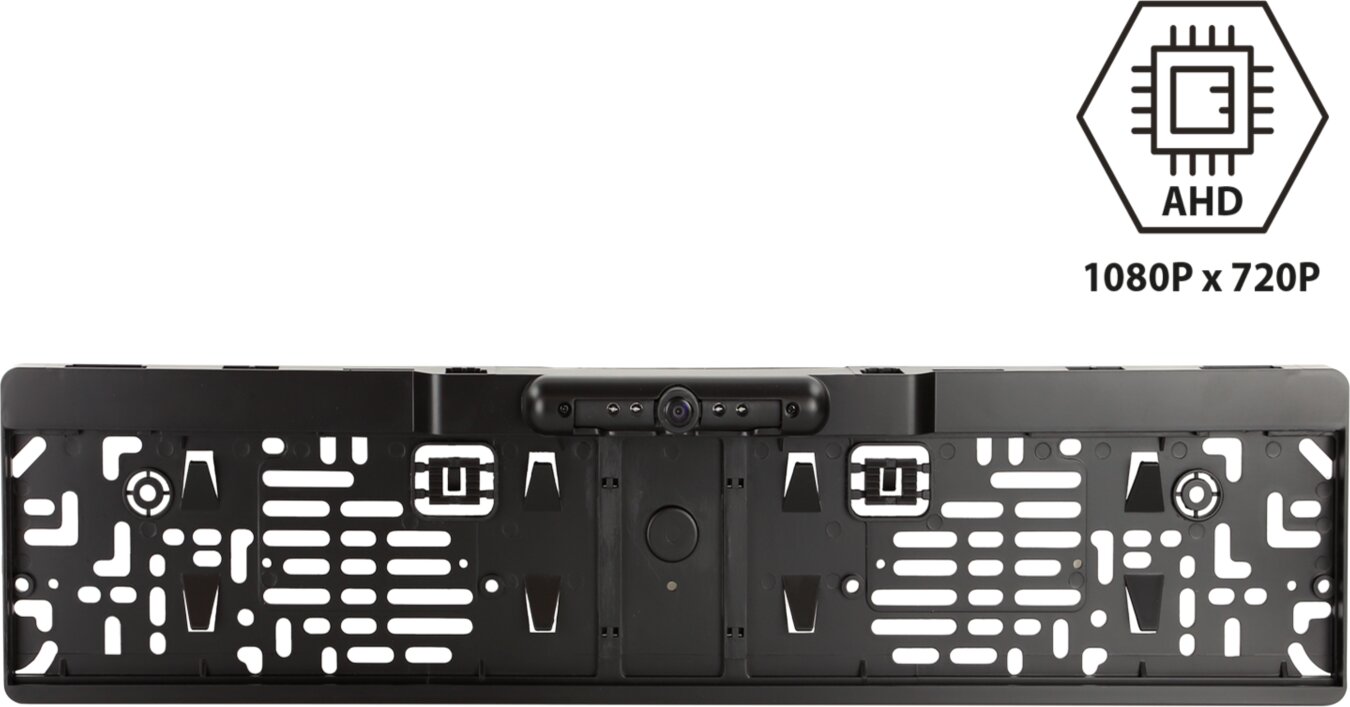 Achteruitkijkcamera AHD universeel<br> <br>Ontwerp: Kentekenplaathouder voor EU-kentekenplaten<br>Type montage: Vervanging van de OEM kentekenplaathouder<br> <br>Met oriëntatielijnen / nachtzichtfunctie / instelbare kijkhoek<br> <br>Opmerking:<br> <br>acv-camera’s zijn geschikt voor continu gebruik<br> <br>Voor installatie > Controleer de kijkhoek en de uitlijning van de camera op de installatielocatie met behulp van een testmonitor<br> <br>Voedingsspanning camera: +12V<br> <br>Aansluiting:<br>rood: +12V geschakeld belastbaar gezekerd<br>zwart: lichaamsmassa direct/GND<br> <br>Cinch(m) geel: Video<br> <br>Jumper:<br>groen: oriëntatielijnen activeren/deactiveren<br> <br>Plaatthouder niet geschikt voor Oostenrijkse nummerplaten<br> <br>Om de kentekenplaat te monteren, verwijdert u de plastic staven in het bovenste gedeelte<br>Plaats de kentekenplaat van onder naar boven en klik onderaan vast<br> <br>Productkenmerken Camera:<br> <br>Constructie: kunststof<br>Kleur: mat zwart<br>Extra’s: Kentekenplaathouder / Oriëntatielijnen via jumper / Nachtzichtfunctie<br>Type sensor: 1/3” AHD<br>Beeldsysteem: NTSC kleur<br>Effectieve pixels: 1080 x 720<br>Lens: mm / F<br>Minimale verlichting: 0 lux met actieve nachtzichtfunctie<br>Resolutie: TV lijnen<br>Lenshoek: diagonaal<br>Kijkhoek: horizontaal 115° / verticaal 80° + 5°<br>Beschermd tegen stof en water: IP67<br>Aansluiting: 4-pins acv systeemstekker (m) Ø5,2mm<br>Bedrijfsspanning: +12V gelijkspanning<br>Voedingsspanning: +12V gelijkspanning<br>Stroomverbruik: 120mA met actieve nachtzichtfunctie<br>Bedrijfstemperatuurbereik: -20°C – 70°C<br>Opslagtemperatuur: -40°C – 85°C<br>Afmetingen: L / H / D – 525mm / 125mm / 38mm<br> <br>Aansluitkabel naar de camera 1m +/-:<br>4 pins acv systeemconnector(m) Ø5,2mm<br>1 jumper<br> <br>Verlenging 6,5m +/-:<br>4 pin acv systeem stekker(f) Ø10mm / 4 pin acv systeem stekker(m) Ø5.2mm<br>Voedingskabel rood 3m +/- bedraad: aansluiting camera / aansluiting achteruitrijlicht op monitor<br>Massakabel/GND zwart 3m +/- bedraad: aansluiting massa lichaam/GND naar camera / aansluiting massa lichaam/GND direct naar monitor<br> <br>Aansluitkabel 20cm +/-:<br>4 pins acv systeem connector(f) Ø10mm<br>rood: voedingsspanning<br>zwart: massa/GND<br>Cinch(m) geel: Video<br> <br>Installatieaccessoires:<br> <br>Aansluiting camera op interfaces:<br>NO-contact relais elektronisch 2V-12V/1,5A max > Artikel: 40-AD-REMOTE<br>Aansluiting camera op achteruitrijlicht:<br>Achteruitrijcamera Spanningsstabilisator achteruitrijsignaal > Artikel: 771000-6100<br> <br>Optionele accessoires:<br> <br>Camerakabel verlenging voor acv camera 5m > Artikel: 771000-6305<br>Camerakabel verlenging voor acv camera 10m > Artikel: 771000-6310<br>Camerakabel verlenging voor acv camera 15m > Artikel: 771000-6315<br><strong><br>Geschikt voor:</strong><br>Universeel Diverse modellen Diverse jaren