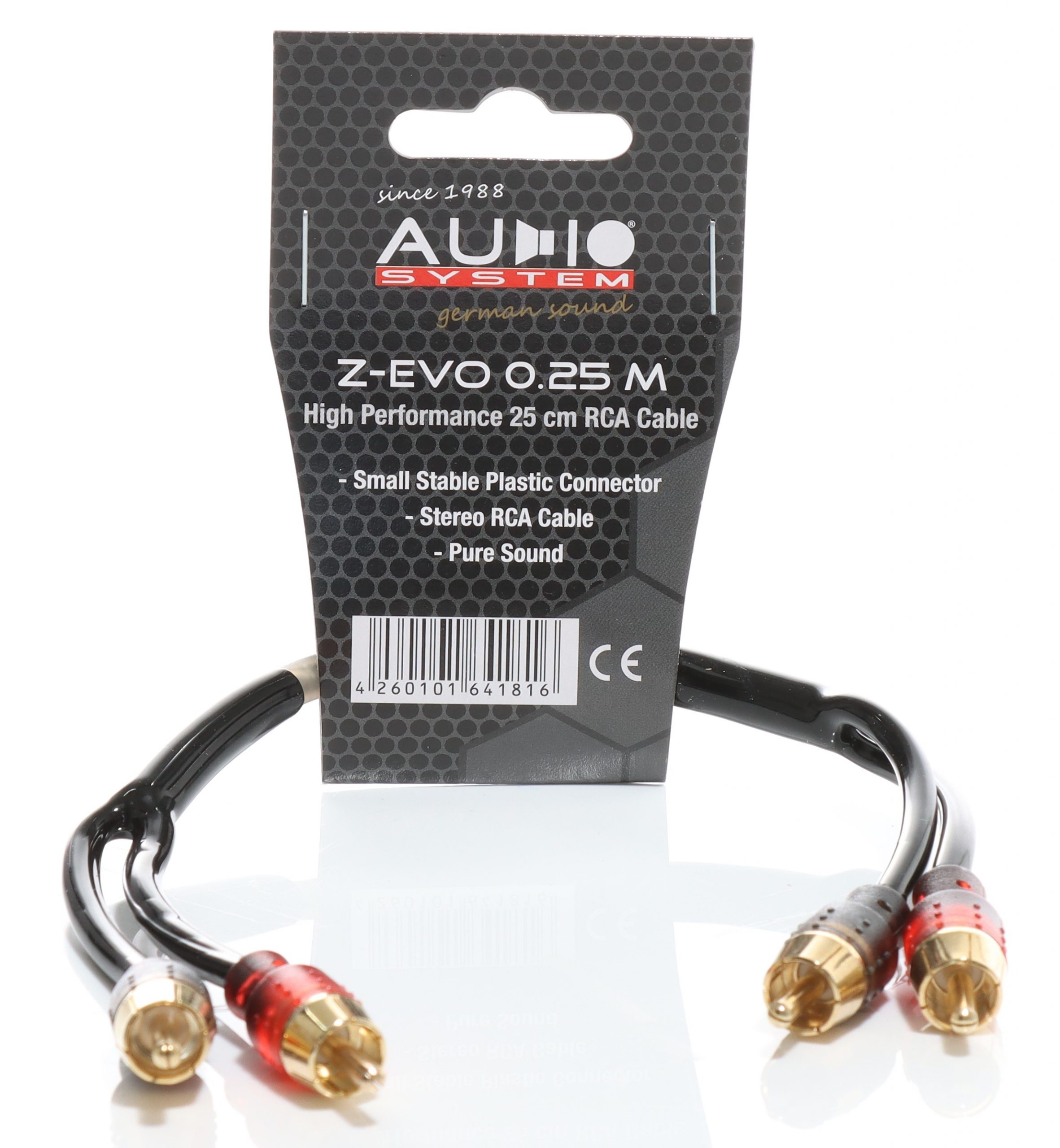 AUDIO SYSTEEM HIGH-PERFORMANCE RCA-KABEL<br>250mm OFC cinch-kabel inclusief papieren blisterkaart<br>Zeer geluidsterk met massieve, kleine en ingelaste plastic pluggen<br><strong><br>Geschikt voor:</strong><br>