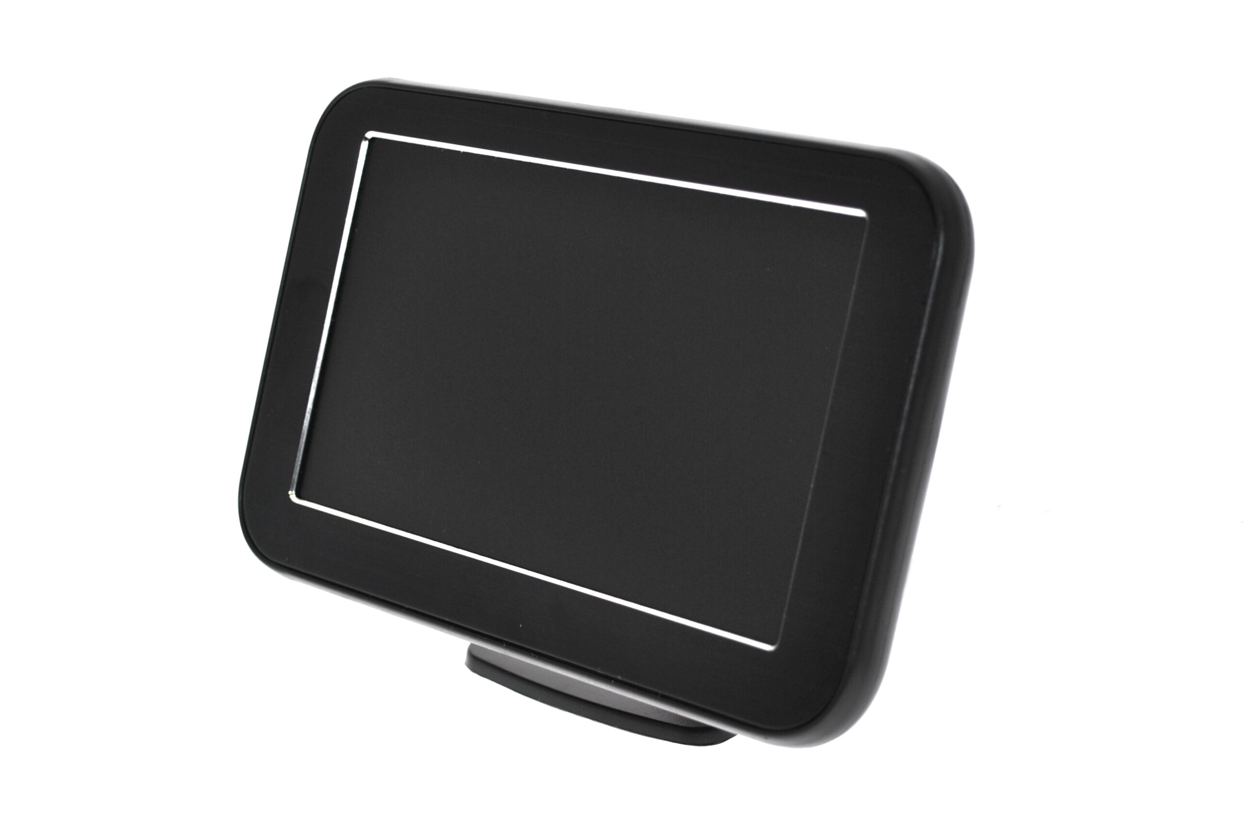 5 inch LCD TFT monitor : 16:9<br>Resolutie: 800 x 480 hoge resolutie<br>Helderheid (cdm) : 400 (LED backlight)<br>Contrast verhouding : 350:1<br>Kijkhoek : 45° boven, 65° onder, 65° links, 65° rechts<br>Kleuren systeem : PAL / NTSC automatisch<br>Rubber painted behuizing<br>Video ingang : 1x RCA<br>Camera ingang : 1x RCA (achteruit trigger)<br>Voedingsspanning : 12V DC<br>Vermogen : 3.5 Watt<br>Temperatuur : -20°C tot +60°C<br>Afmeting : 131 (breed) * 84 (hoog) * 16 (diep) mm<br>Gewicht : 250 gram<br><strong><br>Geschikt voor:</strong><br>