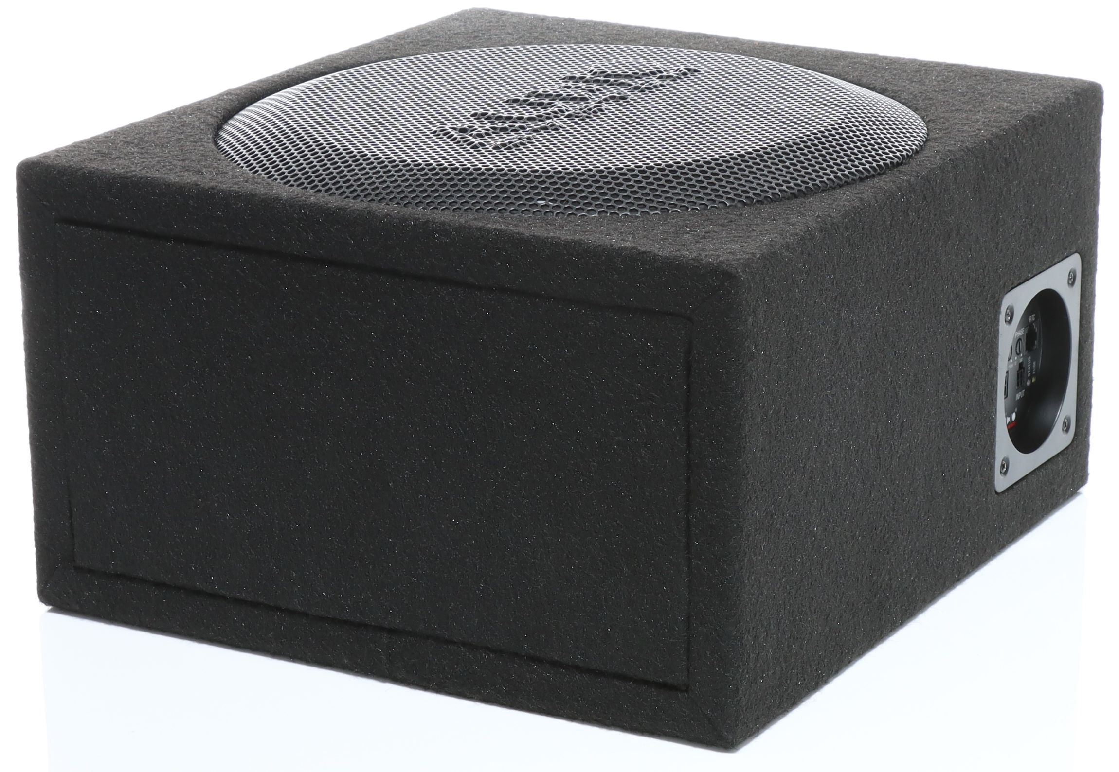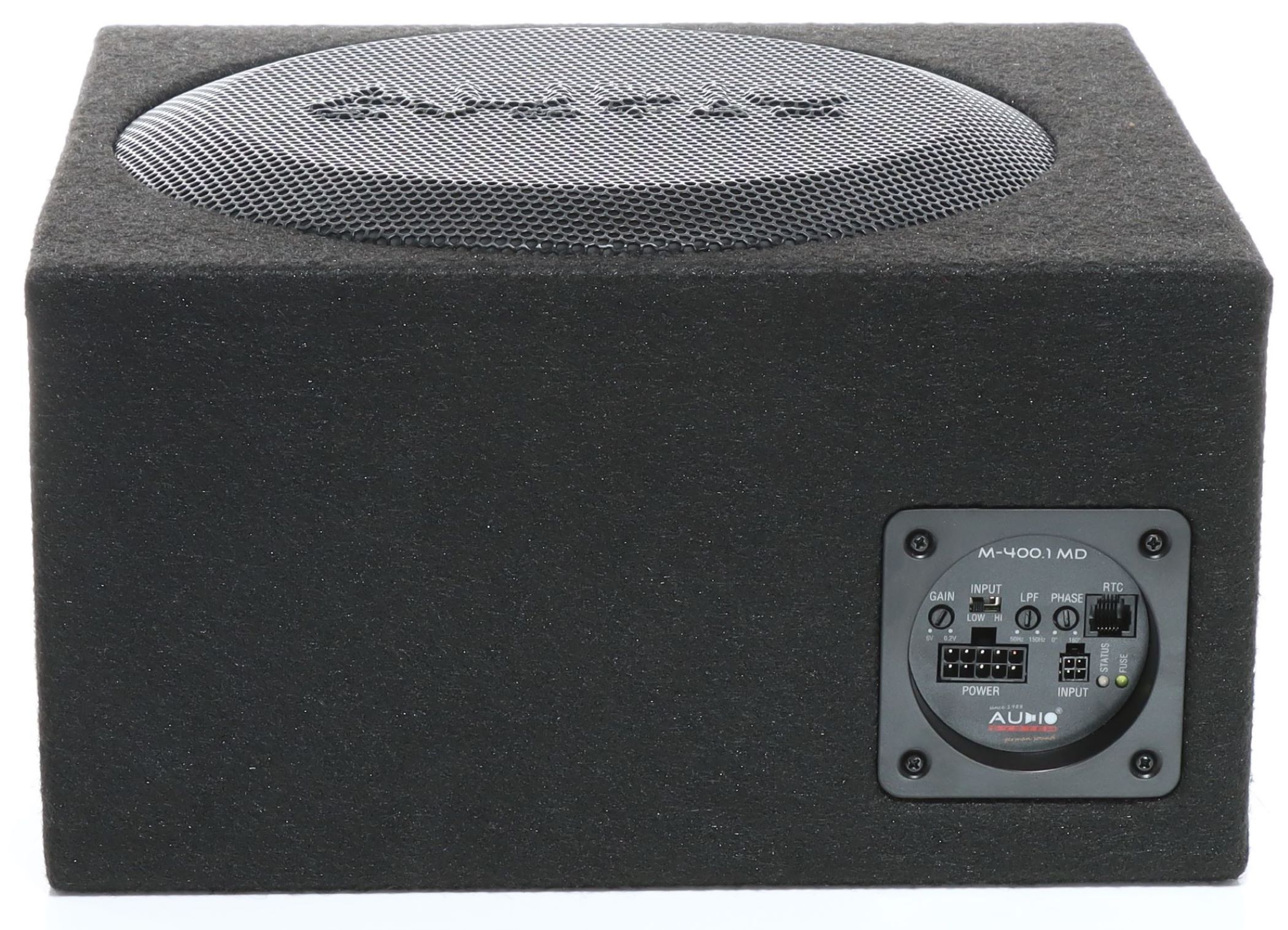 beschrijving<br>M-SERIE EVO 2 RUIMTEBESPAREND<br>10,5 liter gesloten ruimtebesparende subwoofer met M10 EVO2-D4+M-400.1MD<br>zeer sterke MDF-behuizing + 4x rubberen voetjes<br> <br>Prestatiegegevens<br>Impedantie: 2 Ohm (intern 2x 4 Ohm)<br>300/220 watt<br> <br>Maat<br>= 310 mm · b = 285 mm · h = 164 mm<br><strong><br>Geschikt voor:</strong><br>10 Inch<br>Subwooferkist Actief<br>