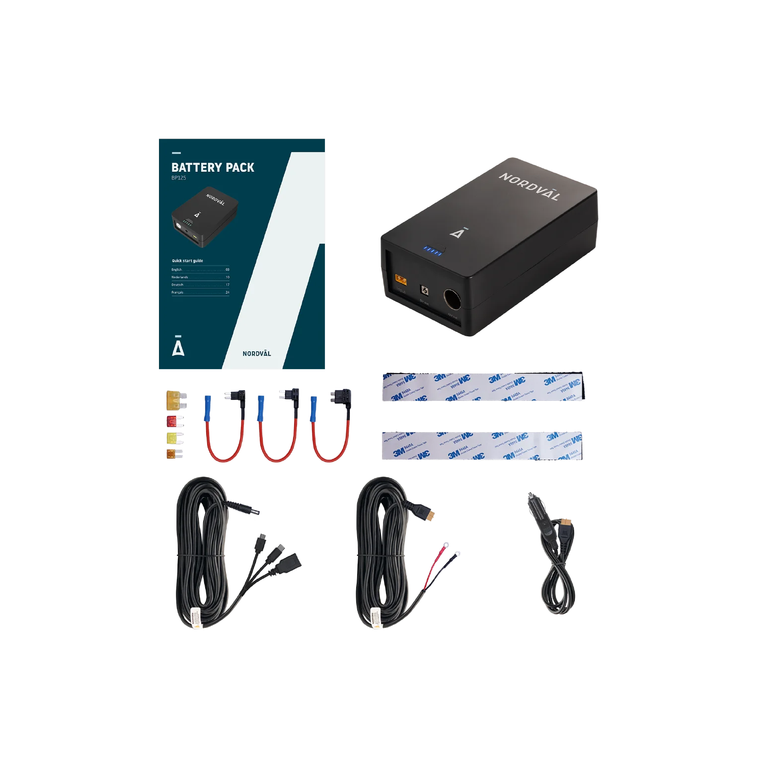 Voorzie al jouw apparaten constant van voeding onderweg!<br>De Nordväl BP125 Battery Pack Ultra biedt veel capaciteit dankzij LiFePO4-batterijtechnologie. Gemaakt om extreme temperaturen te weerstaan en veilig en milieuvriendelijke batterijprestatie te bieden onderweg.<br> <br>• Voorzie jouw apparaten constant van voeding in de auto<br>• Eenvoudige bevestiging en installatie<br>• LiFePO4 technologie<br>• 12-24V invoer<br>• Accuduur van 35-40 uur (dashcam)<br>• 12V sigarettenaansteker & 5V USB<br><strong><br>Geschikt voor:</strong><br>Dashcam Accessoires<br>